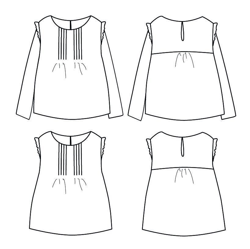 What you will practice with this sewing pattern: how to make pleats, how to partially line a blouse, how to make a slit and how to sew ruffles to the armholes.