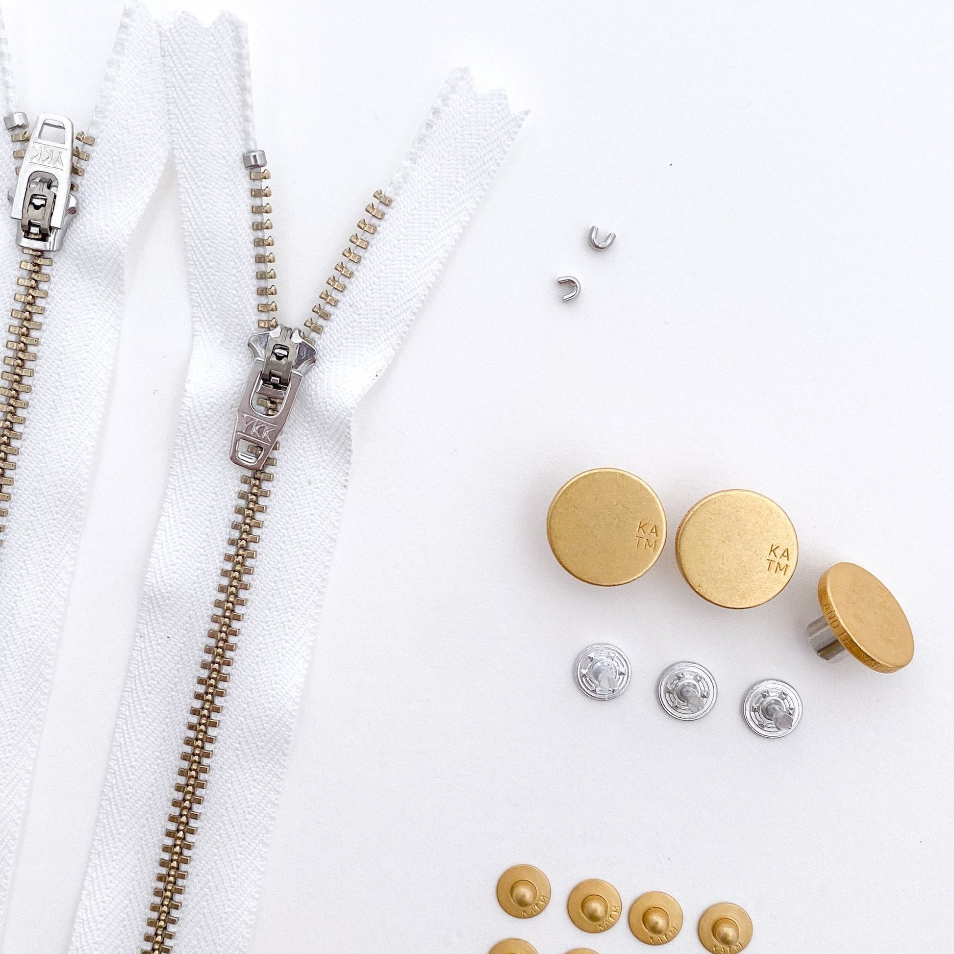 We've chosen some beautiful metal finishes, taking inspiration from our favourite ready to wear looks in denim at the moment, high quality zippers, custom made tools, and packed them all in a super awesome kit for your jeans making journey at home. At KATM, we are all about the finishing touches... and this kit will take your jeans finishing to the next level of awesomeness!