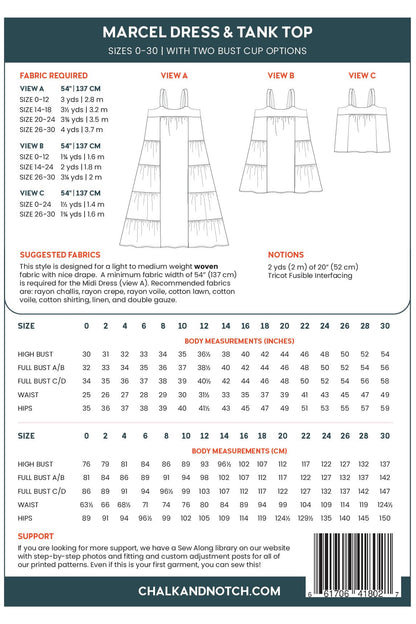 Introducing the Marcel Dress and Tank Top Pattern from Chalk + Notch, a perfect addition to any sewing enthusiast's collection. This paper pattern is designed to elevate your wardrobe with timeless versatility and style. Carefully fitted through the high bust, the Marcel dress and tank top provide a flattering silhouette while allowing ease through the waist and hips.