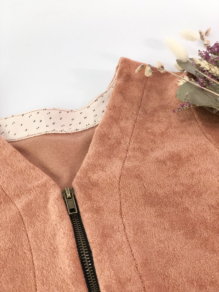 • Fabric 1 - cardigan : preferably knitted or woven soft/stretchy. Fleece, French terry, knitted Ponti Roma, terry jersey, knitted knit, heavy jersey, quilted jersey, quilted fabric, knitted or woven stretchy jeans, jacquard.