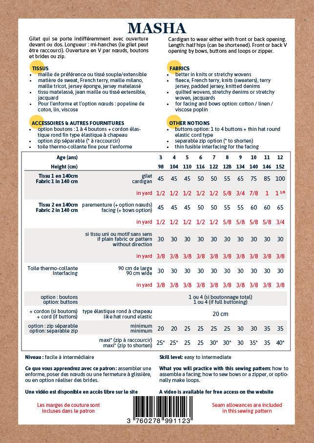 Masha Cardigan & Sweater Sewing Pattern - Girl 3/12Y - Ikatee - Simplifi Fabric