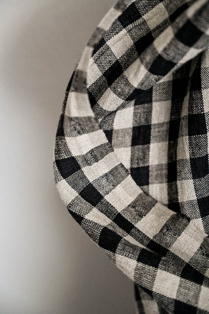 Black and natural gingham. Suitable for dresses, tops, loose trousers, and slouchy jackets. Would make a fine Ellis dress.