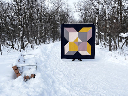 This modern, original quilt pattern is perfect for confident beginners! Includes a two-colour, five-colour and multi-colour option. The pattern includes instructions for the following sizes: