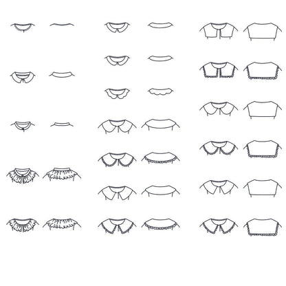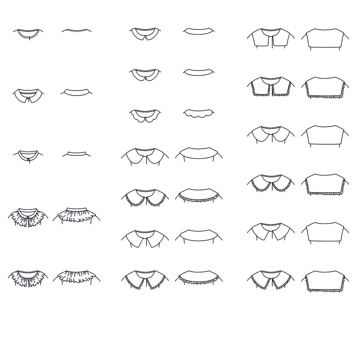 To vary your dress pattern you can use our pattern extensions, both for different collars and sleeves.