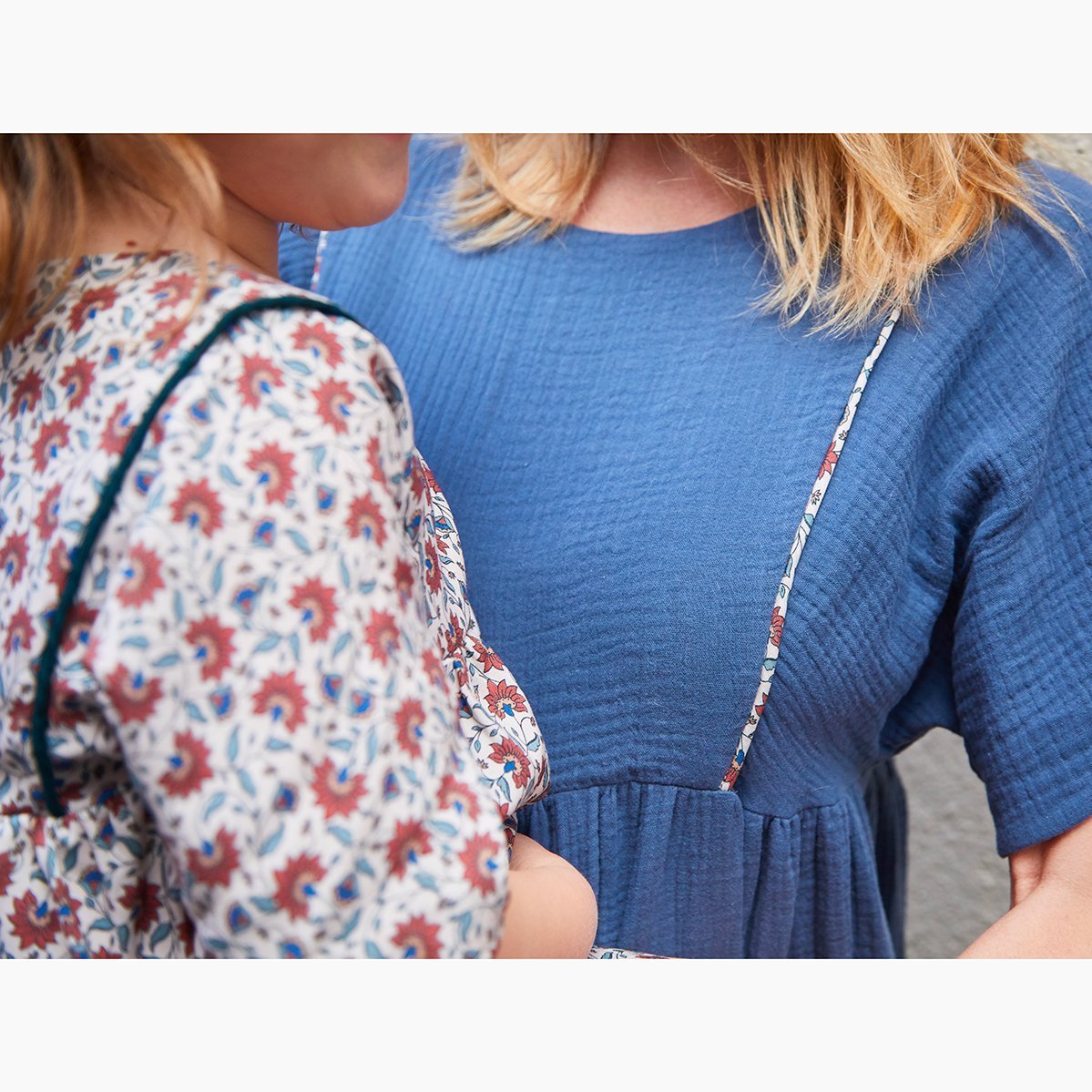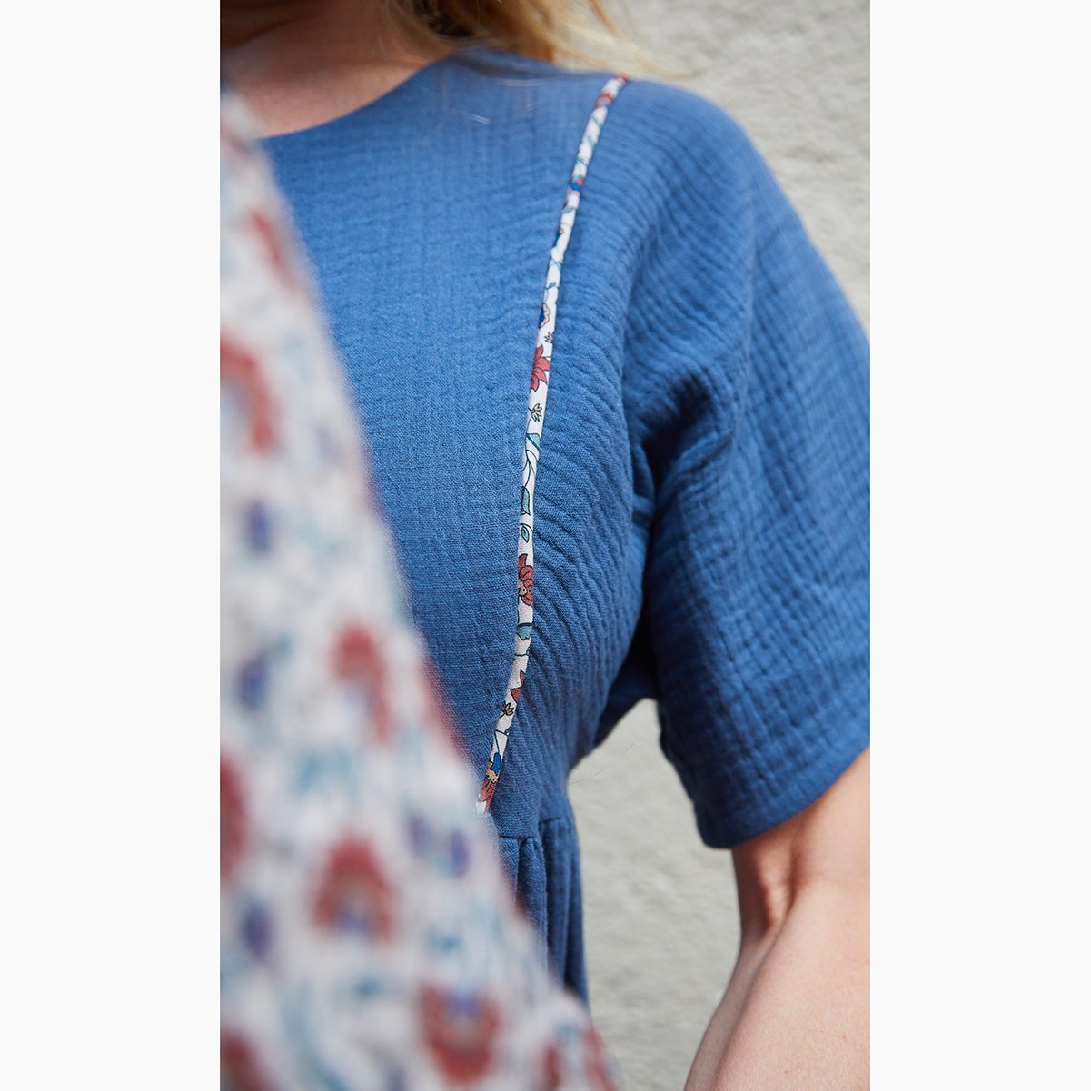 The bib/yoke is lined in the same fabric (needs included in the supplies to provide) or in another contrasting fabric (then provide 25 cm of lining fabric as an option)