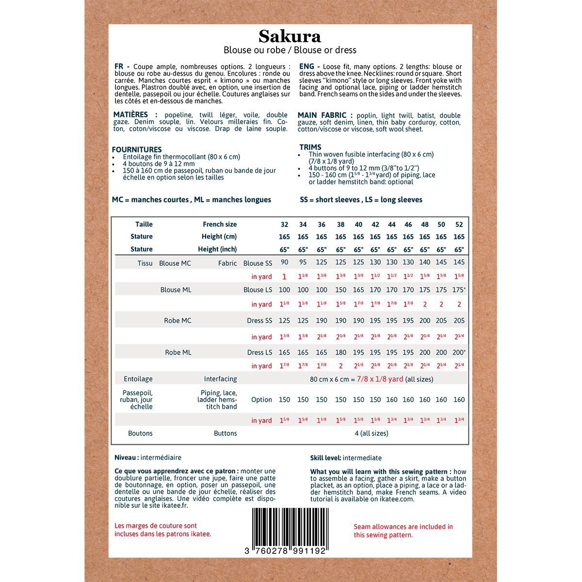Sakura Mum Blouse/Dress Sewing Pattern - Ladies 32/52 - Ikatee - Simplifi Fabric