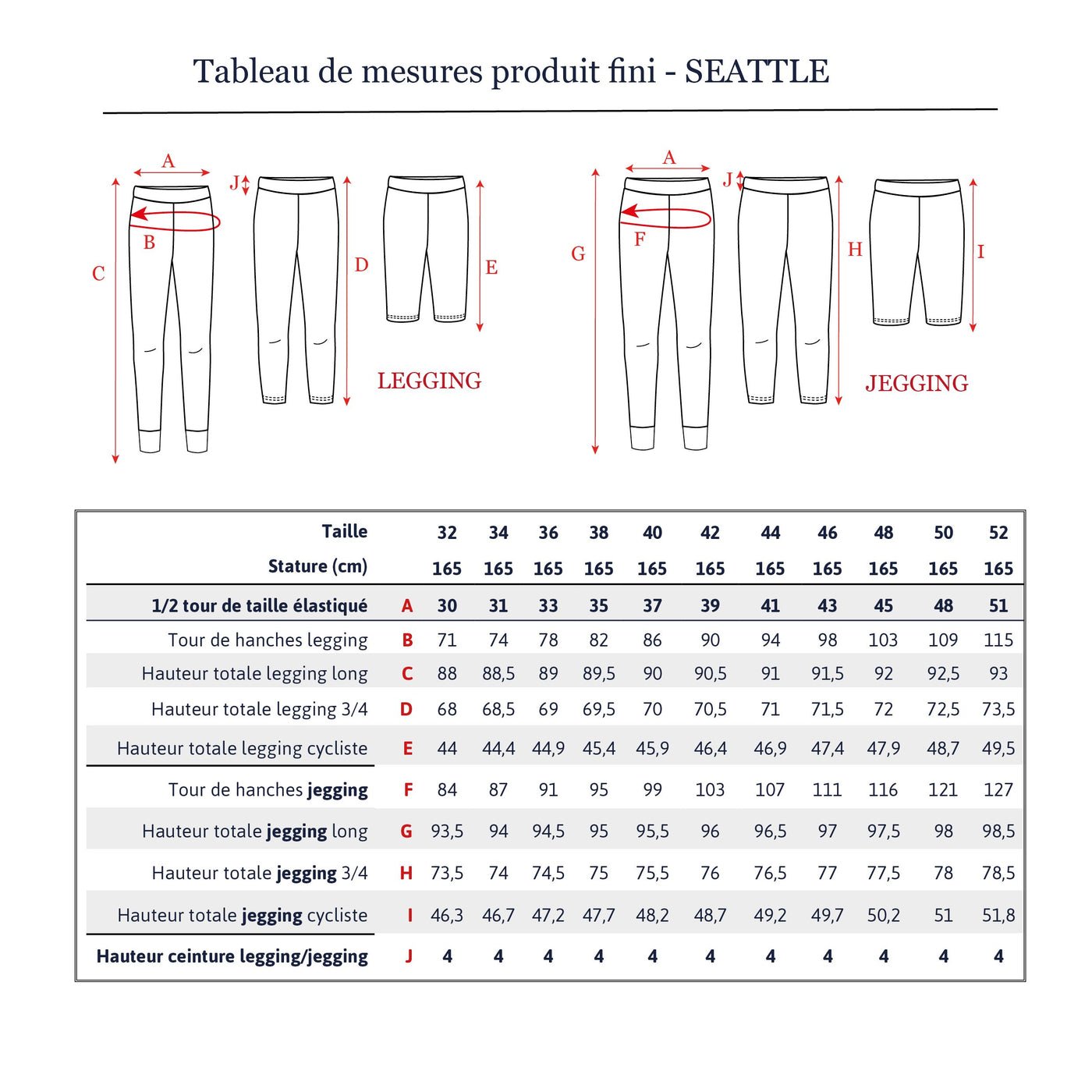 Leggings or jegging finished garment measurements: see in the pictures or here for Seattle & here for Seattle kids.