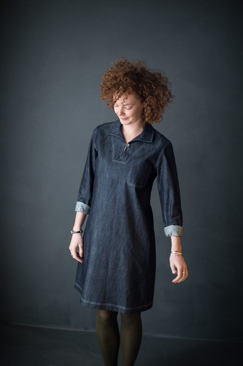 Note: The lengthened Foreman that our model with the blond hair is wearing – this is a size 38 at the shoulder graded out at the underarm/side seam to a size 42 and lengthened to a finished length of 110cm.