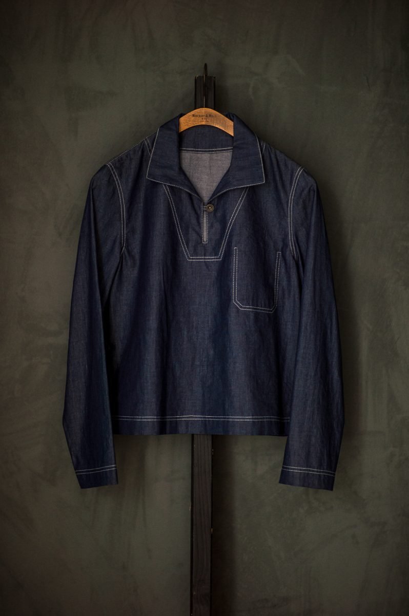 Features a boxy cut, 2 piece sleeves, a neat square collar, 2 hip pockets and one breast pocket. Can be optionally top-stitched in contrasting thread.