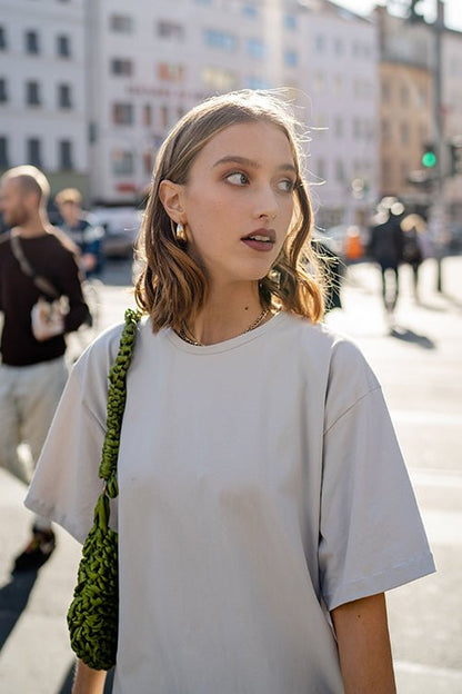 Tip: We use a medium weight GOTS certified organic cotton jersey made of 95% cotton and 5% elastane with a weight of 200g/sqm for the Oversized T-shirt.
