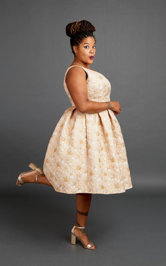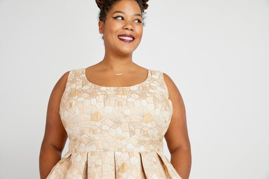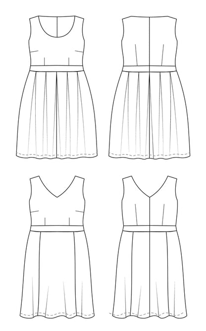 The Upton Dress puts the design in your hands, as you choose from a scooped or V-neck, high or low back, and a gored skirt or deep, dramatic box-pleats. The pattern features a fully lined bodice (with a cleverly clean-finished zipper), and hidden pockets for every eventuality.